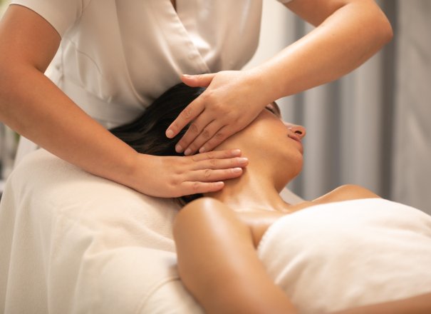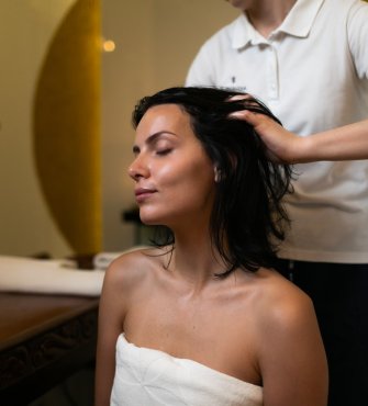 Shiroabhyanga – masaż głowy, szyi i ramion. Łagodzi bóle głowy, napięcia i stres. Odżywia skórę głowy i wzmacnia włosy.